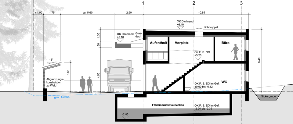 baugesuchsplan, querschnitt a-a